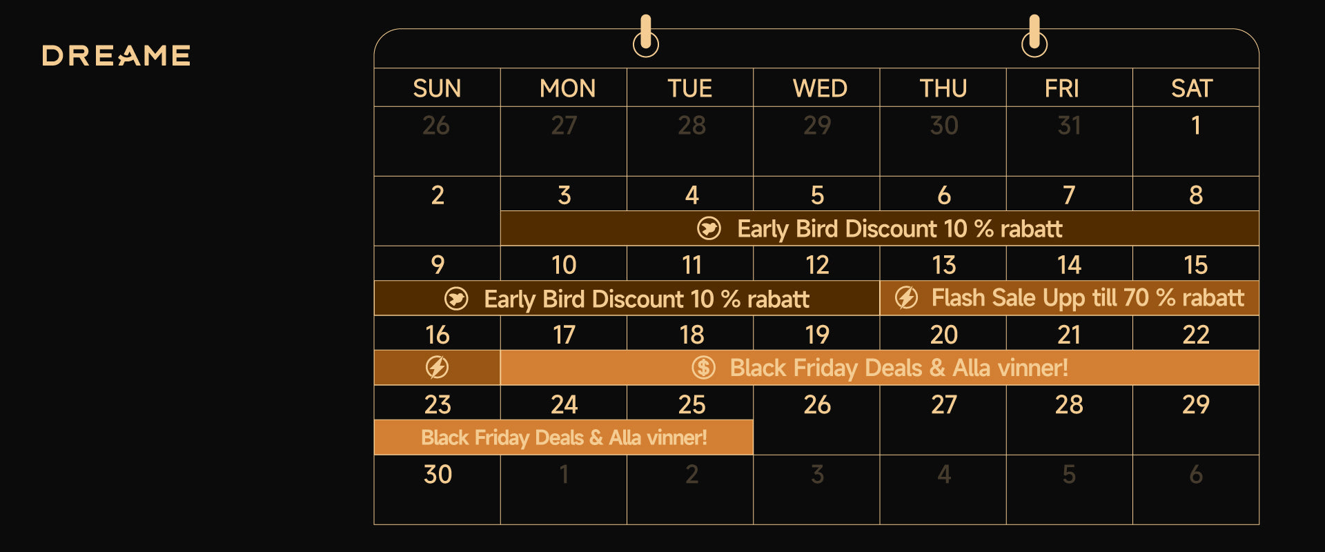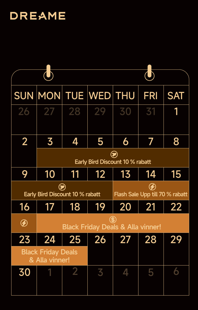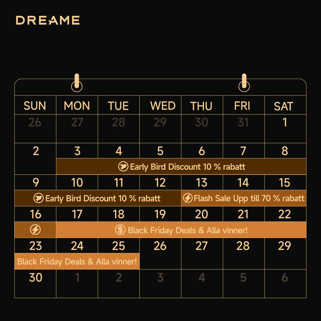 Prenumeranter som registrerar sig under kampanjperioden får en kupong för 10 % extra rabatt. När kupongen har angetts dras rabatten automatiskt av från det ordinarie priset. Dreame förbehåller sig rätten att när som helst förkorta eller förlänga kampanjperioden utan föregående meddelande till deltagarna.