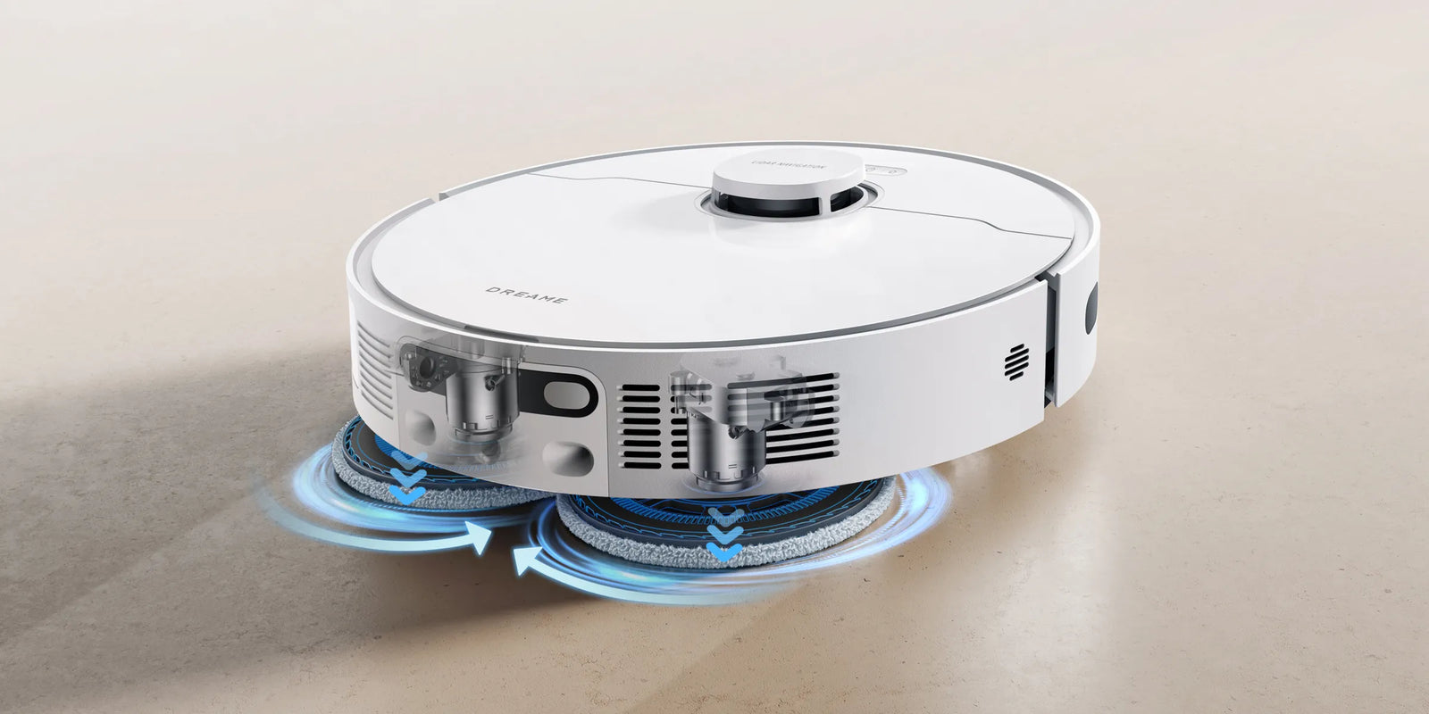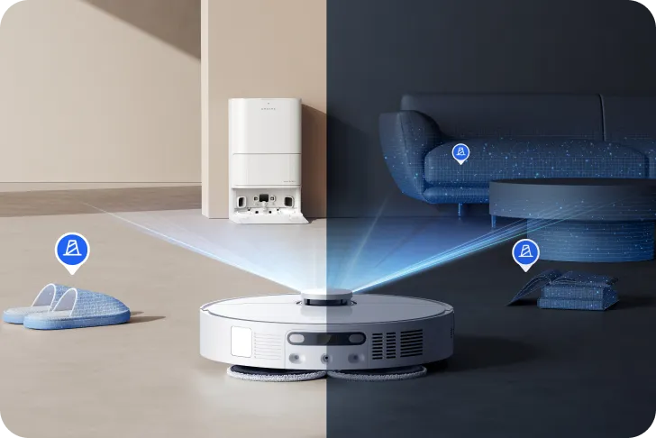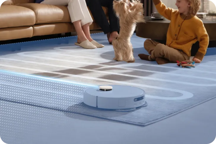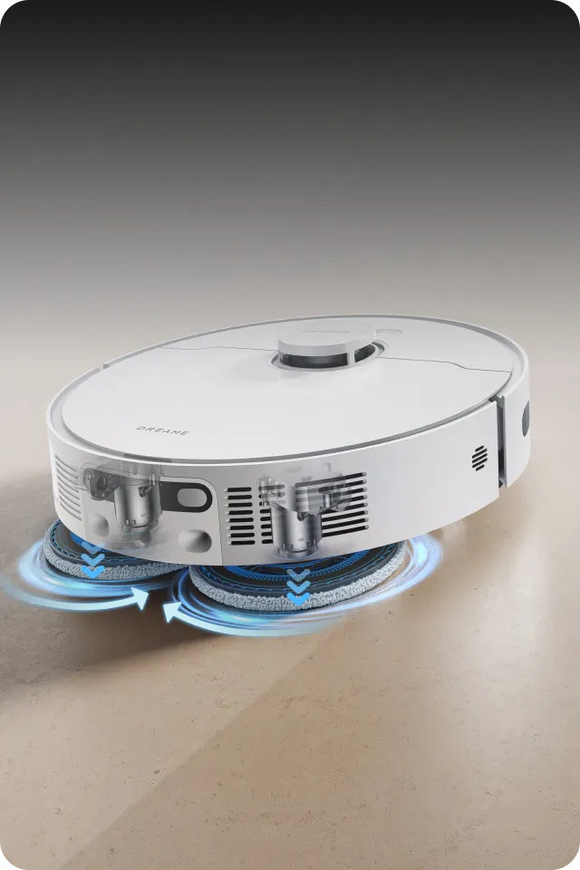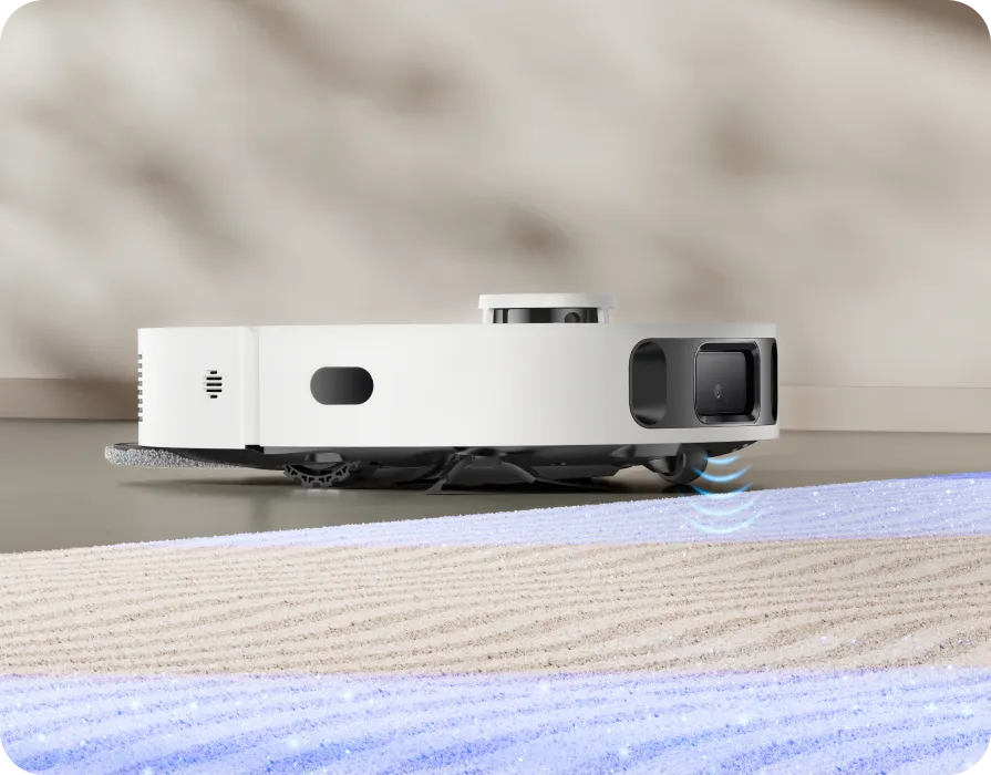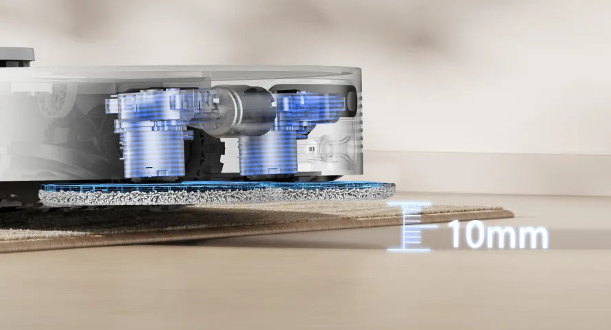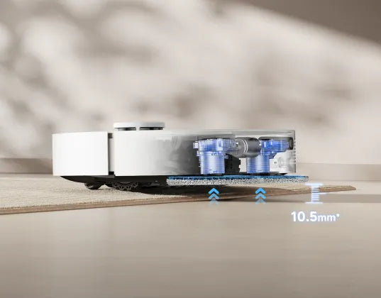 * 10,5 mm lyft av mopparna: Höjdskillnaden för robotdammsugaren före och efter mopplyftning är 10,5 mm. För mattor med lugg som är längre än 3 mm föreslår vi att du ställer in roboten på att undvika mattor med hög och mellanhög lugg via Dreamehome-appen (endast i läget för intelligent rengöring av matta) och skyddar mattorna från att bli våta.