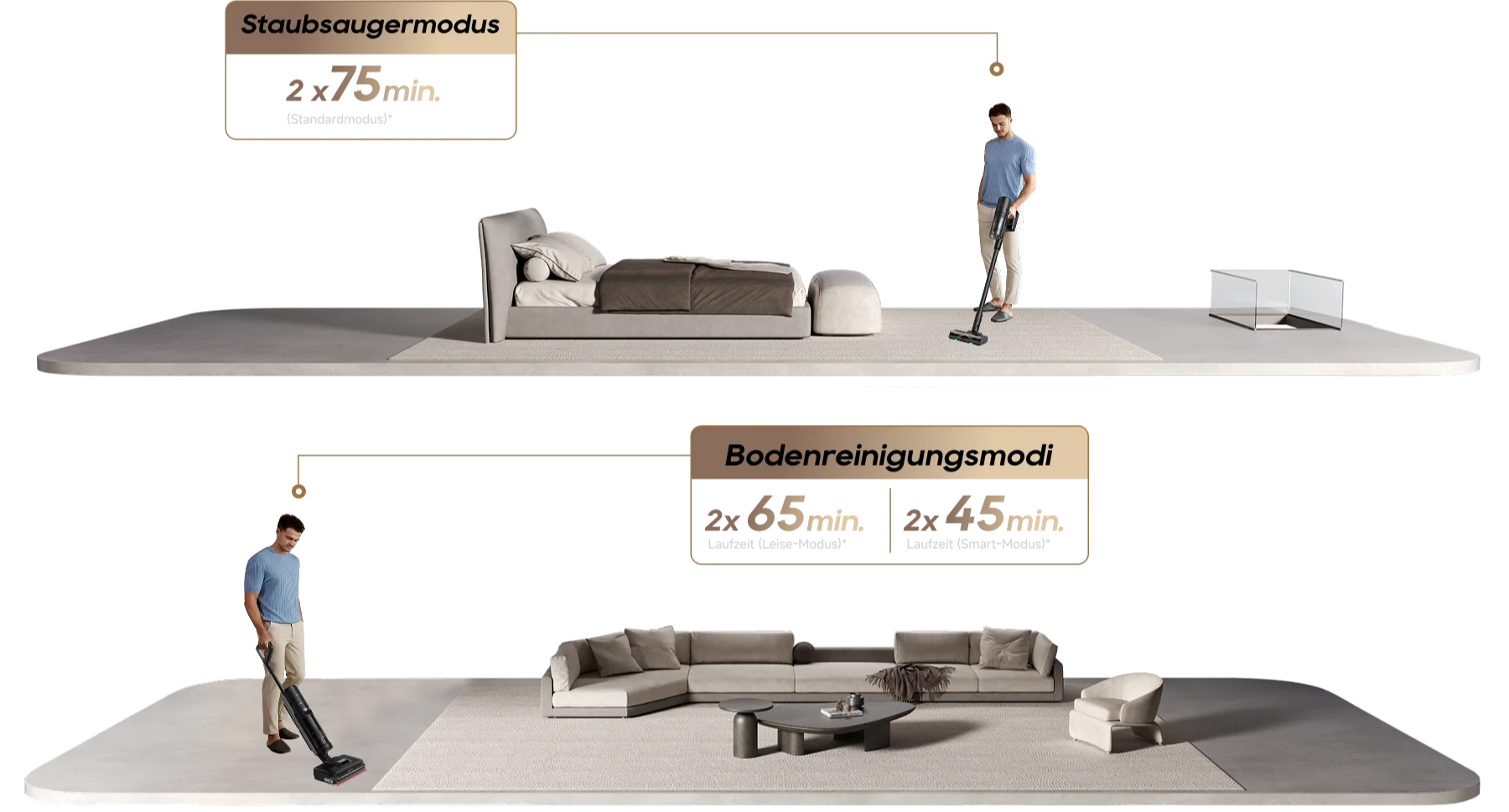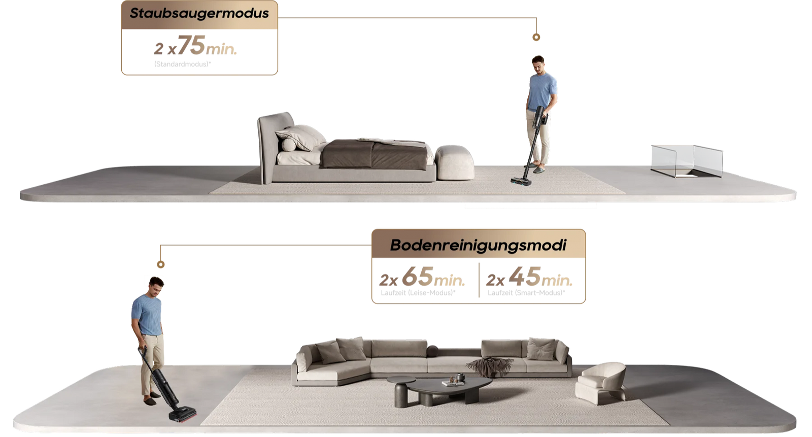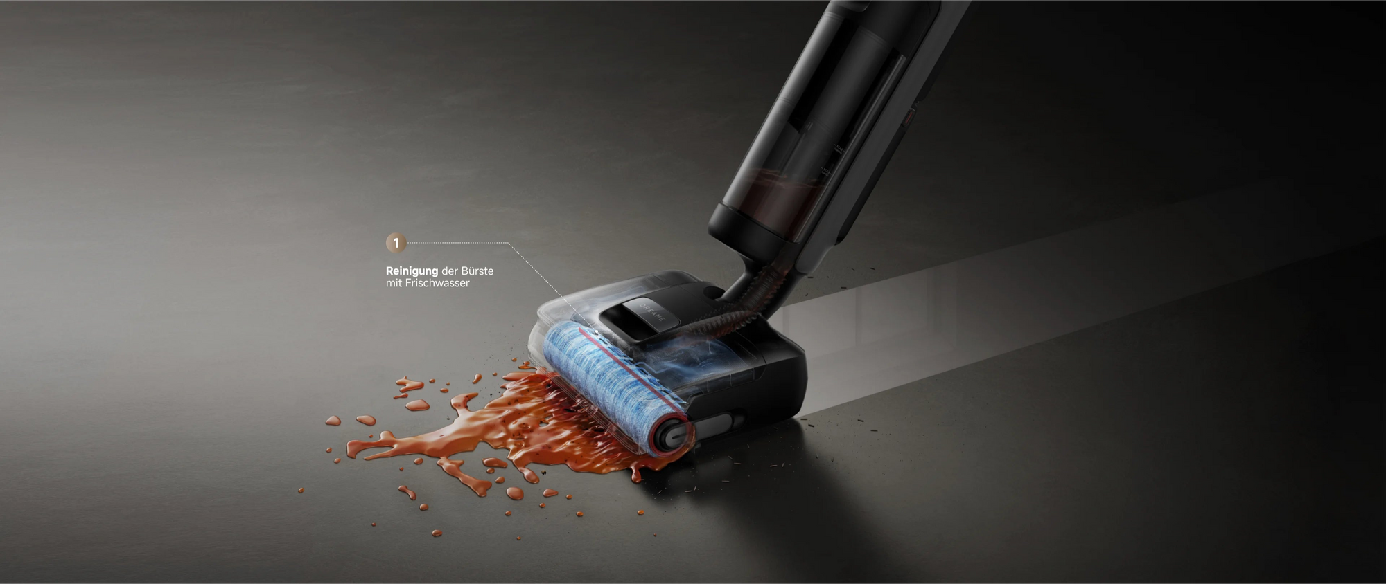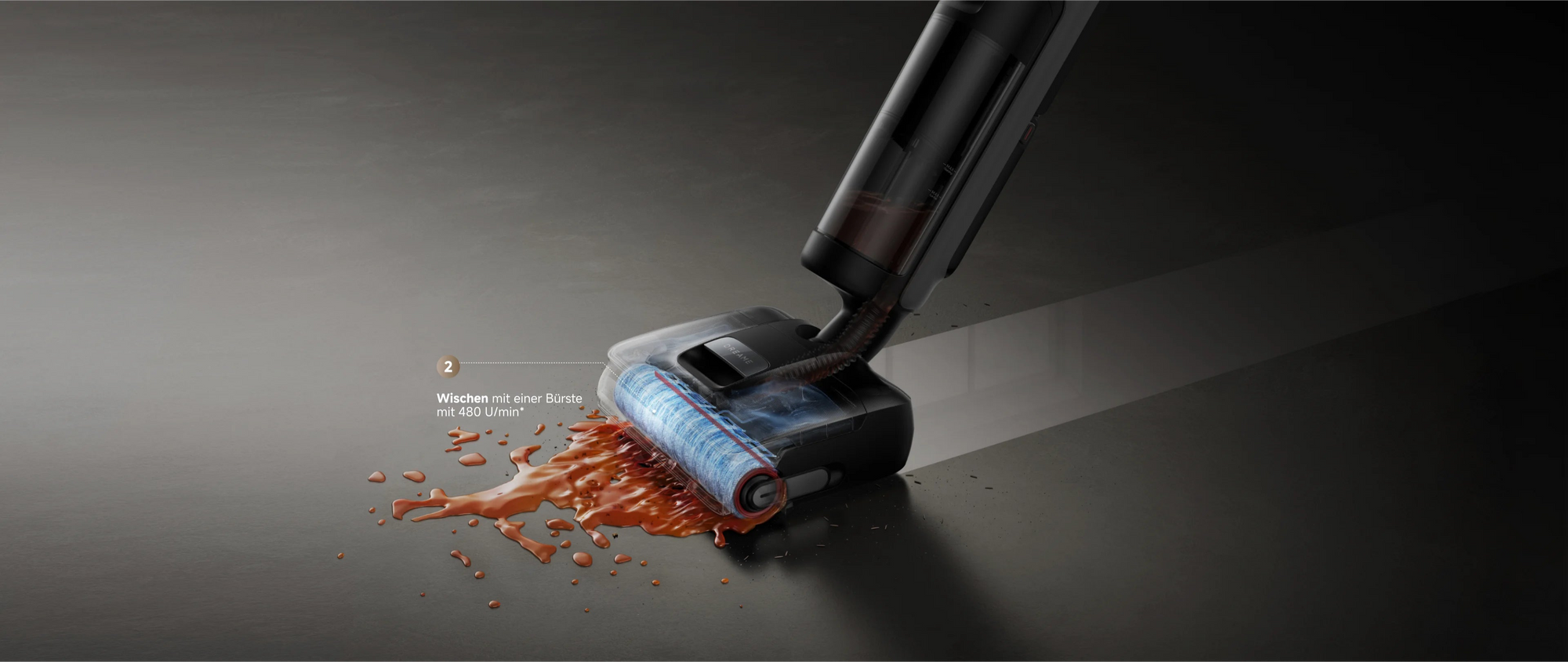 *0,2 Sek: Die Zeit, die der Roboterarm benötigt, um sich abzusenken und den Boden zu erreichen, wenn Sie die Bürste vorwärts gleiten lassen und anhalten – basierend auf unseren internen Labordaten.