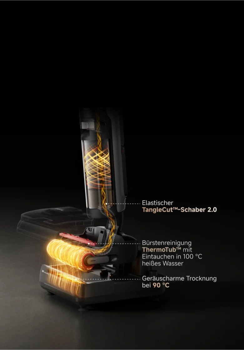 *60 °C: Die Verwendung von heißem Wasser bis zu 60 °C hilft bei der Fleckenentfernung, der Staubsauger erhitzt das Wasser jedoch nicht selbst.