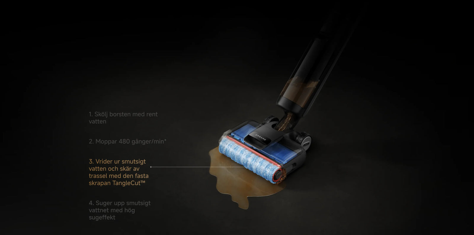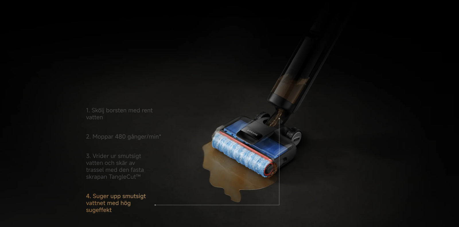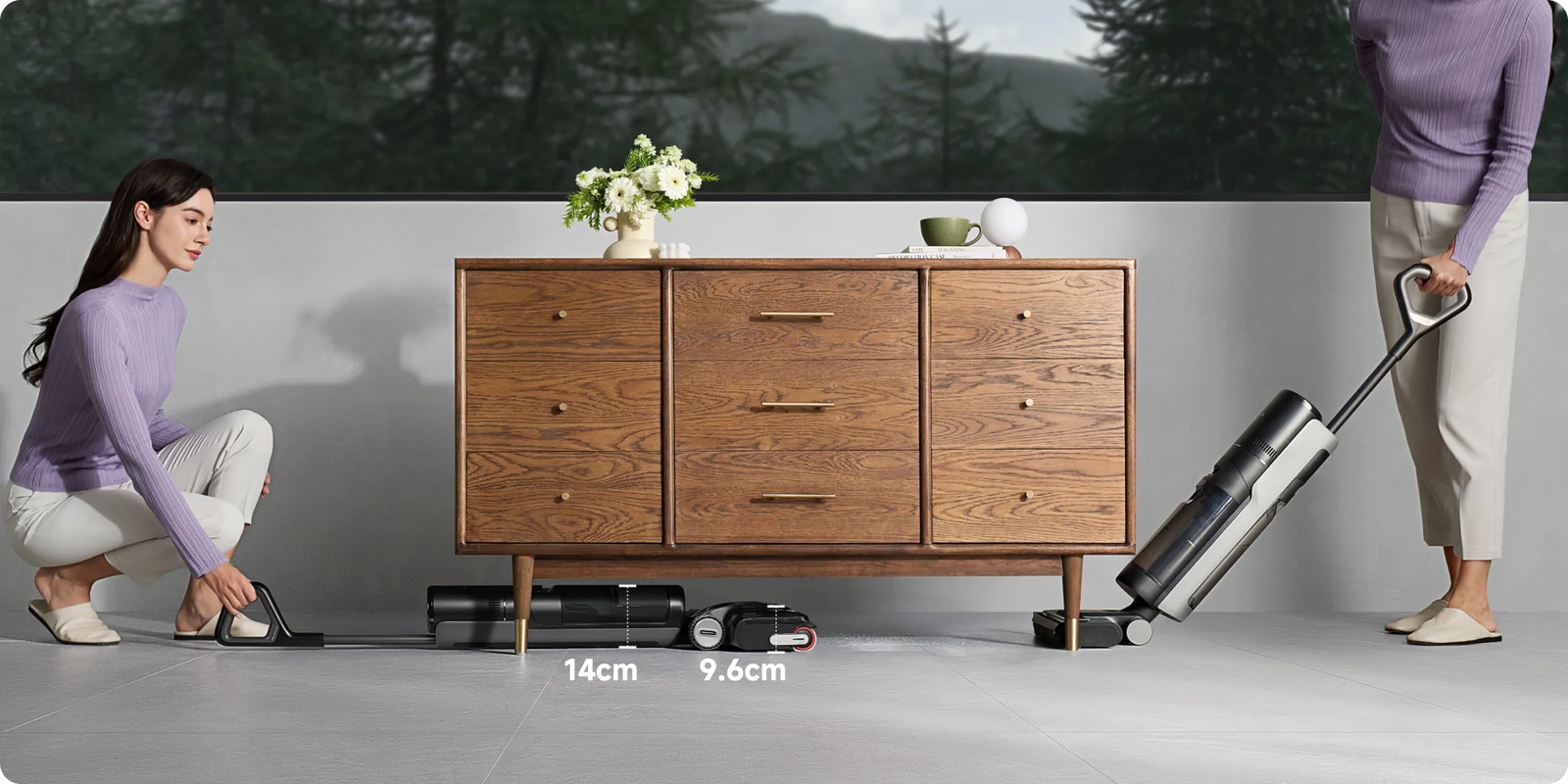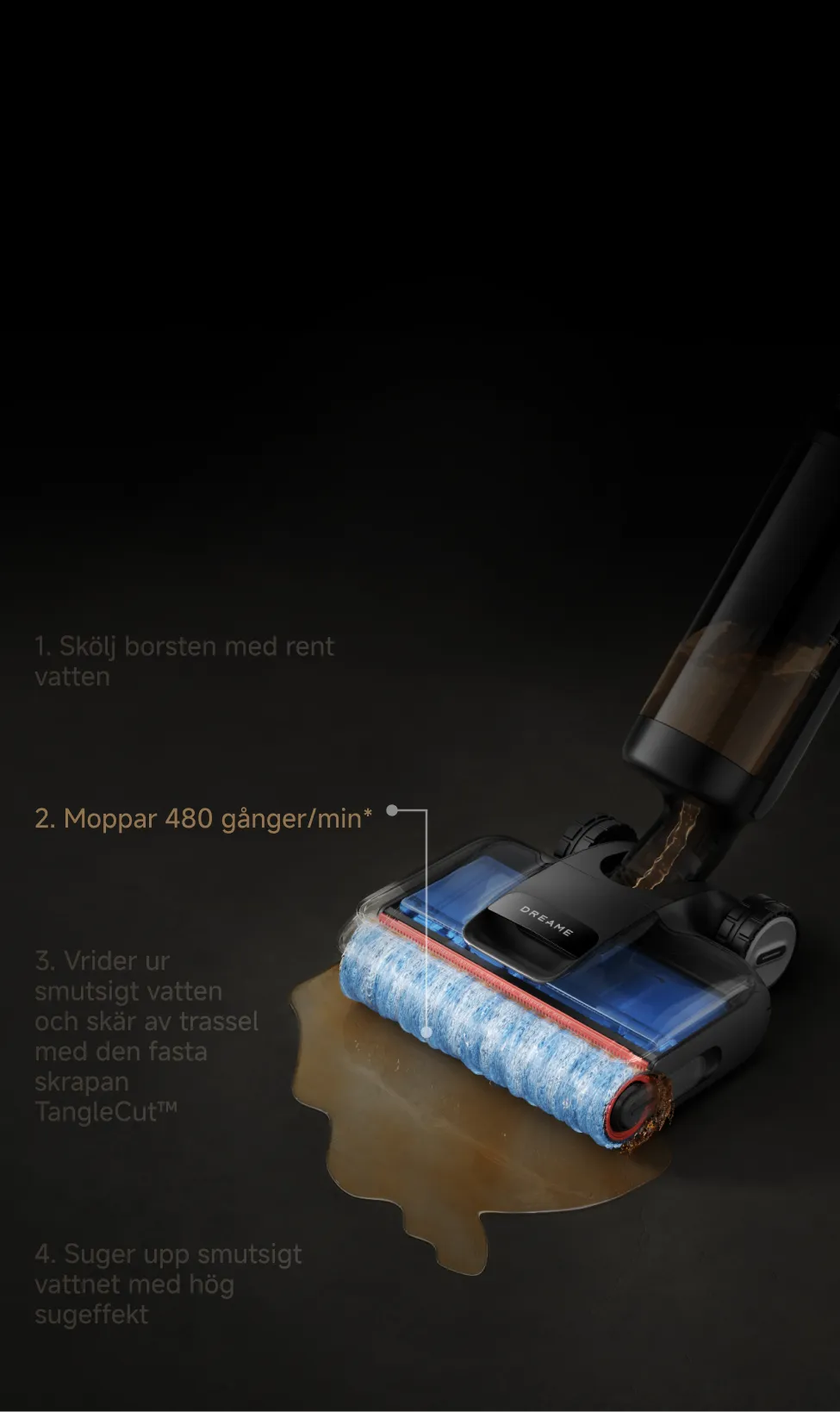 * 0,2 g vattenränder: H12 Pro FlexReach lämnar mindre än 0,2 g vattenmärken efter 4 omgångar moppning av ett trägolv på 60 centimeter med en hastighet på 20 cm/s, baserat på våra interna laboratorietester. Faktiska resultat kan variera beroende på golvtyp, användning och miljöförhållanden.