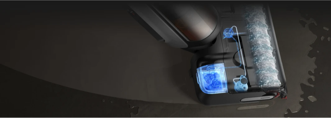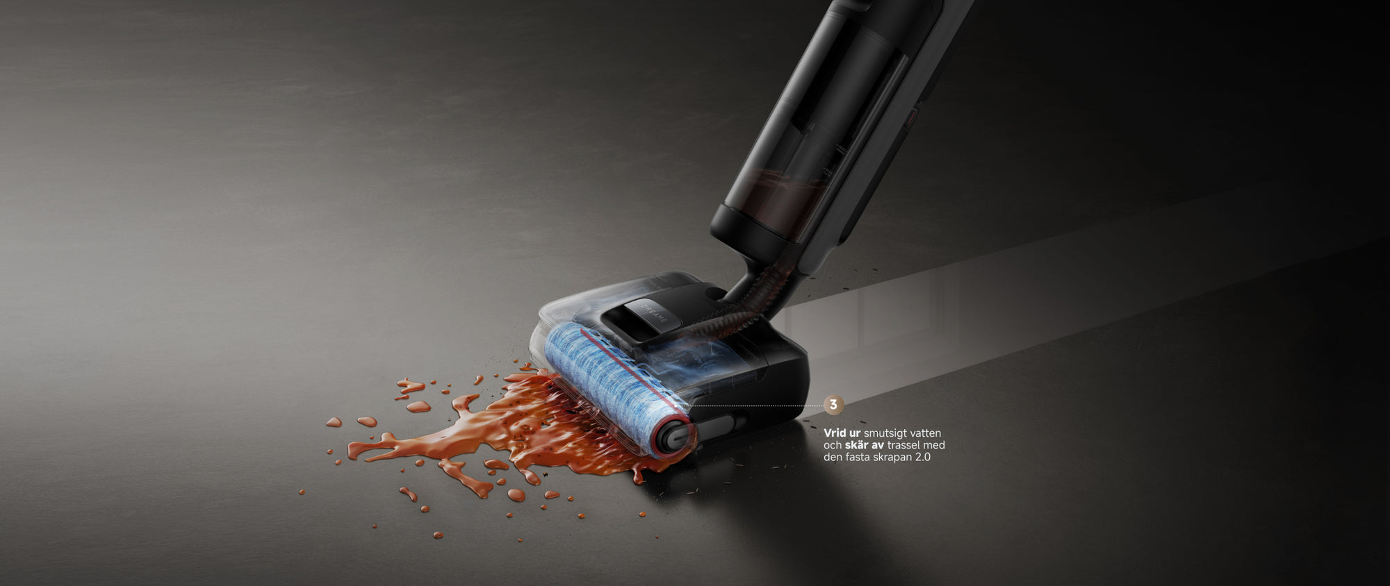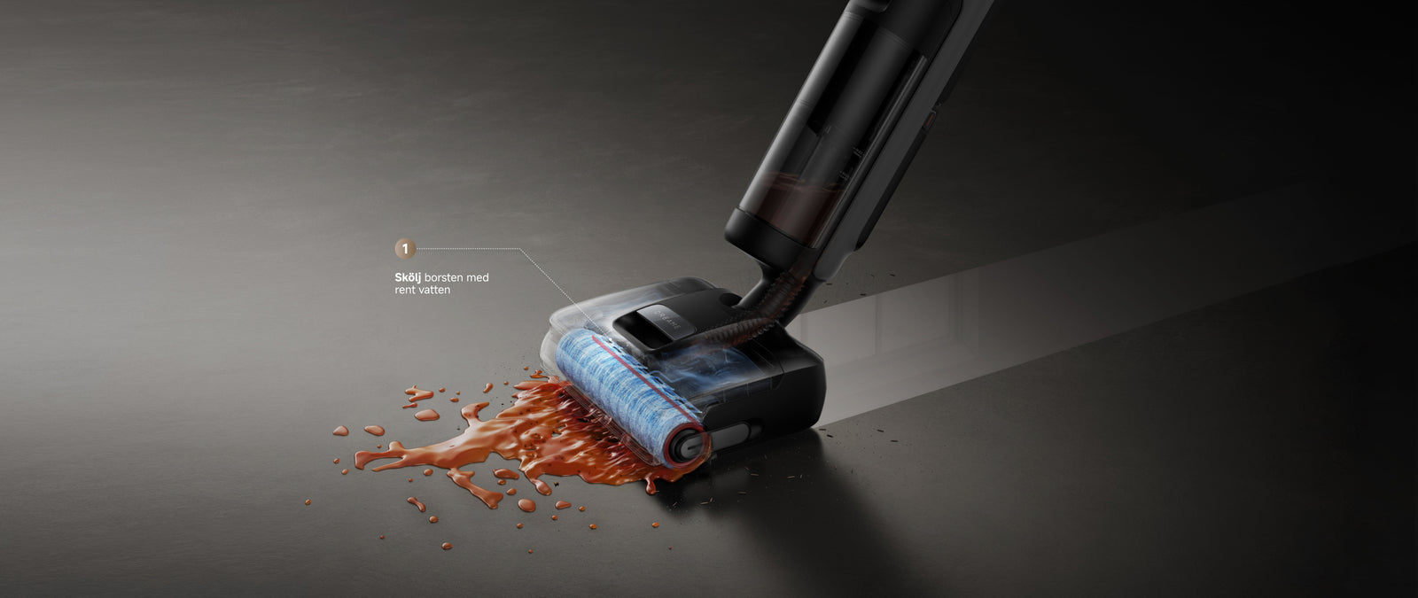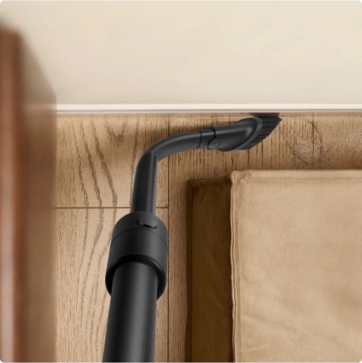 H15 kan fällas ned helt i 180 grader*, ligga platt mot golvet och nå under sängar, soffor och låga möbler utan problem. Vattenbehållaren för smutsigt vatten håller smutsvattnet borta, vilket skyddar motorn och gör att den upprätthåller en kraftfull sugeffekt på upp till 23 000 Pa för att klara även de snävaste utrymmena.