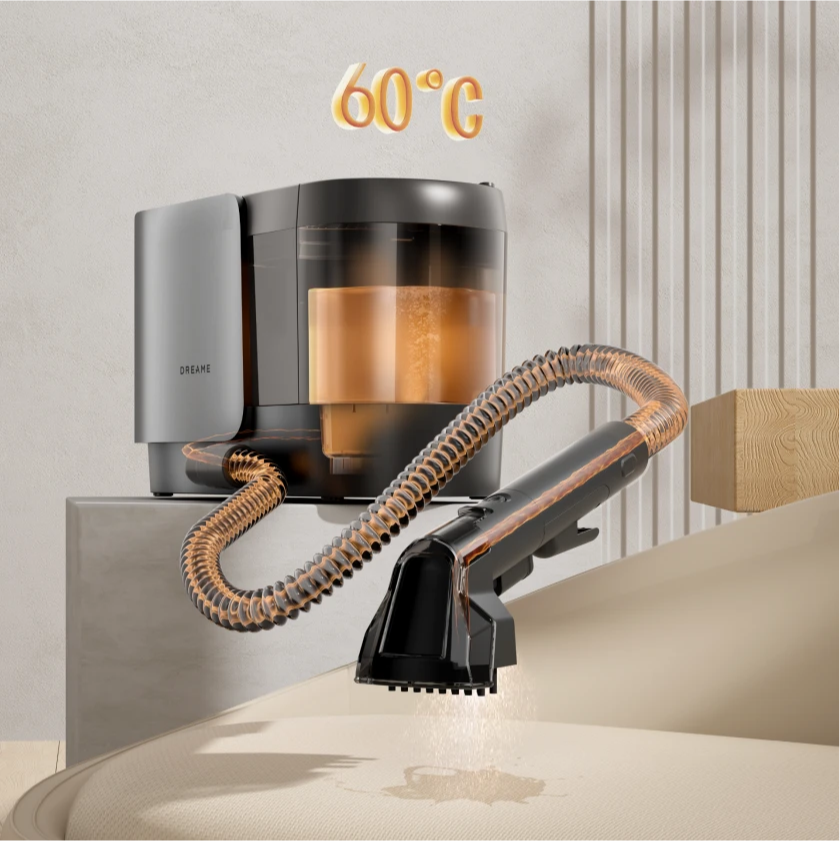 *60 °C: Die Verwendung von heißem Wasser bis zu 60 °C hilft bei der Fleckenentfernung, der Staubsauger erhitzt das Wasser jedoch nicht selbst.