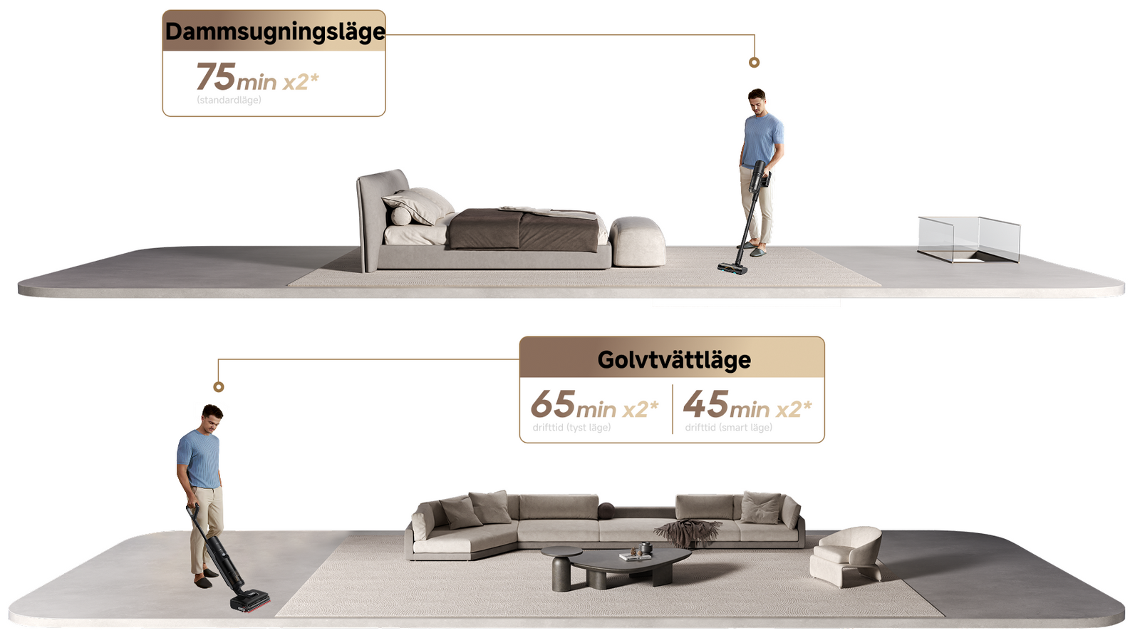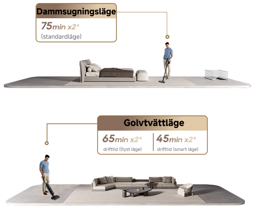 *45 min, 30 min: Baserat på våra egna laboratorietester. Faktisk drifttid kan variera.