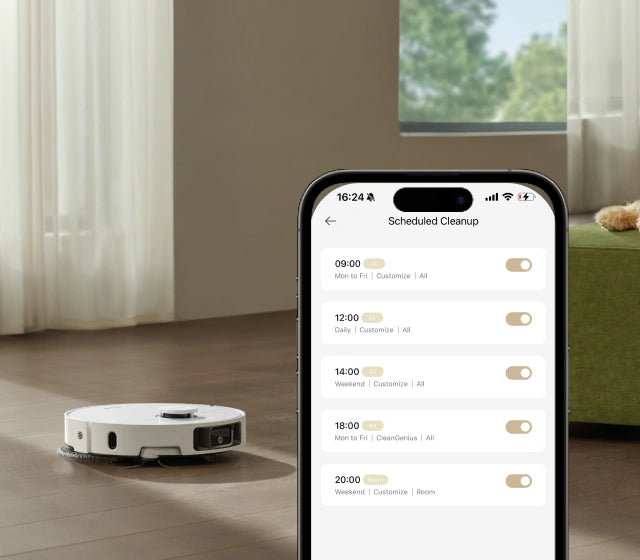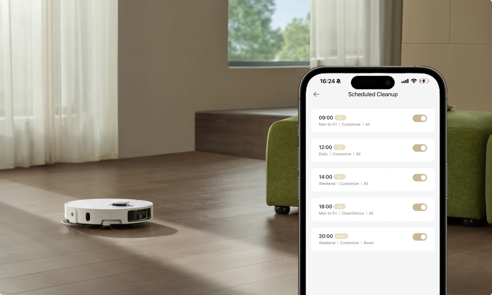 * Fyra städrutter: snabb/standard/intensiv/djup (endast tillgänglig i lägena Mopp och Mopp efter sugläge).