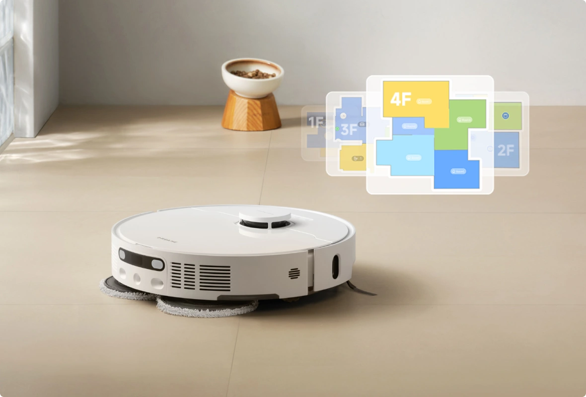 * Anpassade inställningar: Fem nivåer av sugeffekt*、moppfuktjustering på 32 nivåer:*、fyra städrutter*.