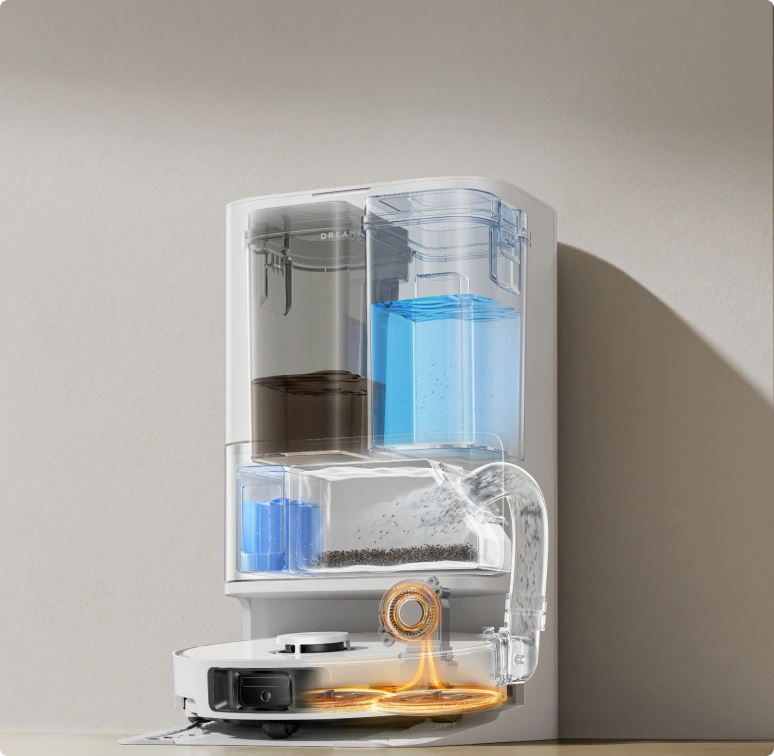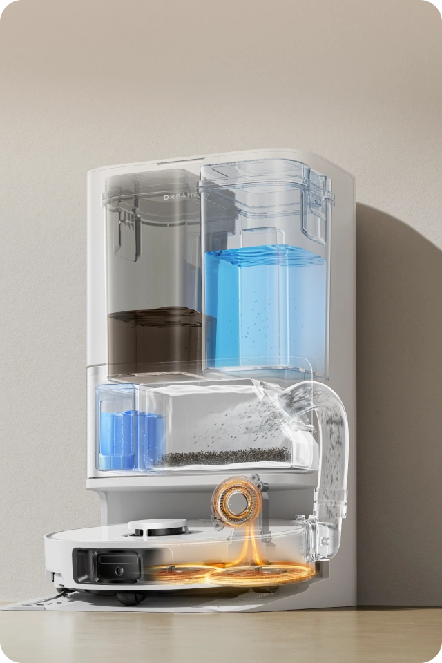 * 30 % snabbare: Baserat på data från vårt labb, jämfört med Dreames robotdammsugarmodeller utan snabbladdning.