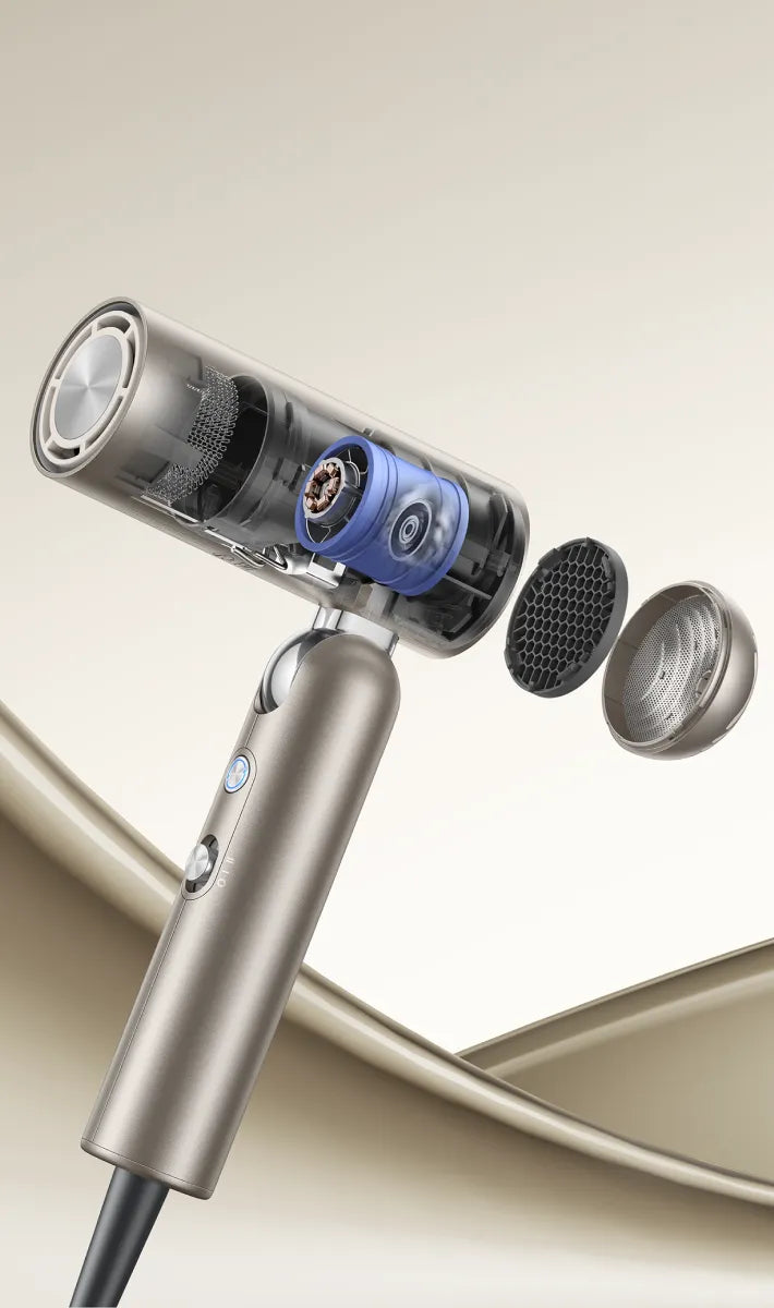 Motorn levererar ett kraftigt luftflöde som torkar kort hår på bara 40 sekunder* och gör snabb styling möjlig.