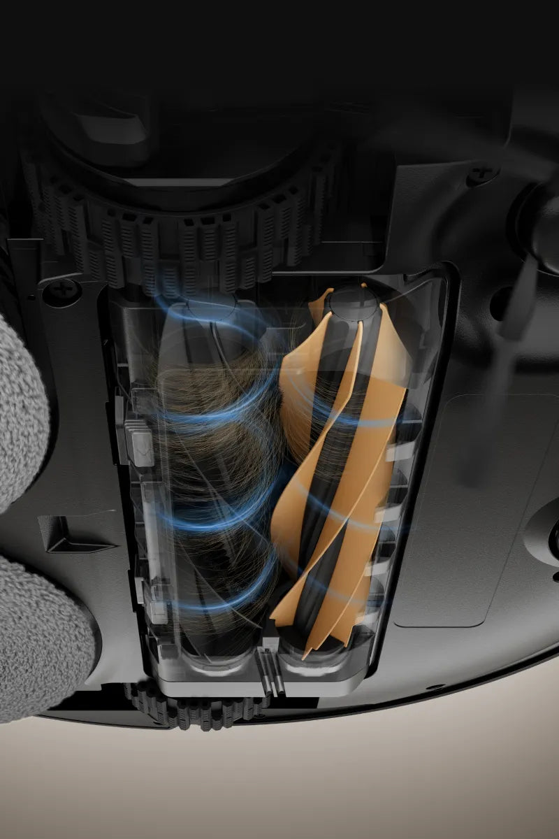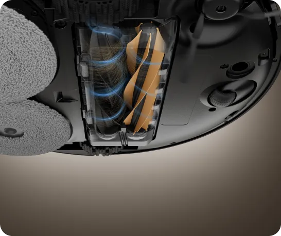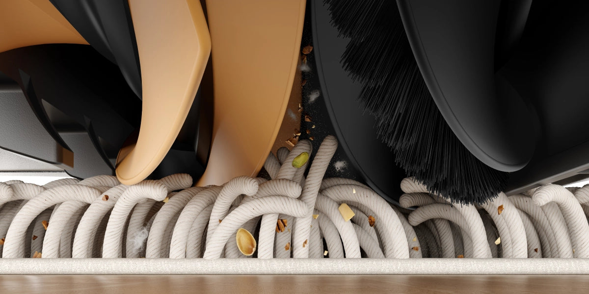 Under dammsugning sänker TripleUp-tekniken ned sido- och huvudborsten för att fånga damm och husdjurspäls medan mopparna lyfts upp 10,5 mm* för att hålla mattor torra och oskadade. Den här konfigurationen säkerställer stark sugeffekt och skyddar mattor mot möjliga fuktskador.