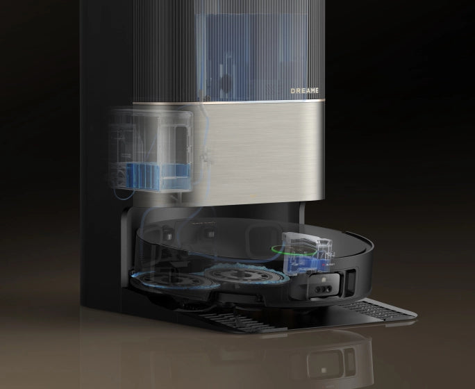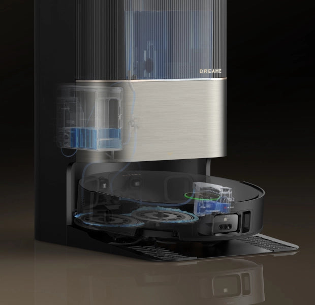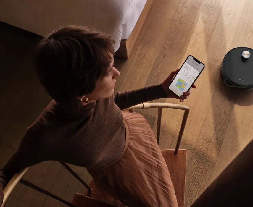 Med Dreamehome-appen kan du anpassa rengöringsstrategier för olika mattyper, så att mattorna förblir rena utan att bli genomdränkta, smutsiga eller skadade. För sovrumsmattor med lång lugg kopplar X50 Ultra Complete automtiskt bort mopparna för att hålla mattorna torra. Den förlitar sig helt på dammsugning för en mild men effektiv städning.