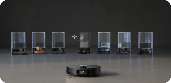 * Bakterieborttagningsgraden för dammpåsöppningen når 99,98 %: Testat av TÜV SÜD på E. coli och Staphylococcus aureus under automatisk tömning. Faktiska resultat kan variera beroende på hemmiljön. Testrapport nummer: 704012410056-00.