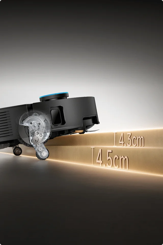 * 60 % tjockare gummi: Jämfört med Dreame X50 Ultra Complete. Baserat på data från våra egna laboratorietester. Faktiska prestanda kan variera.