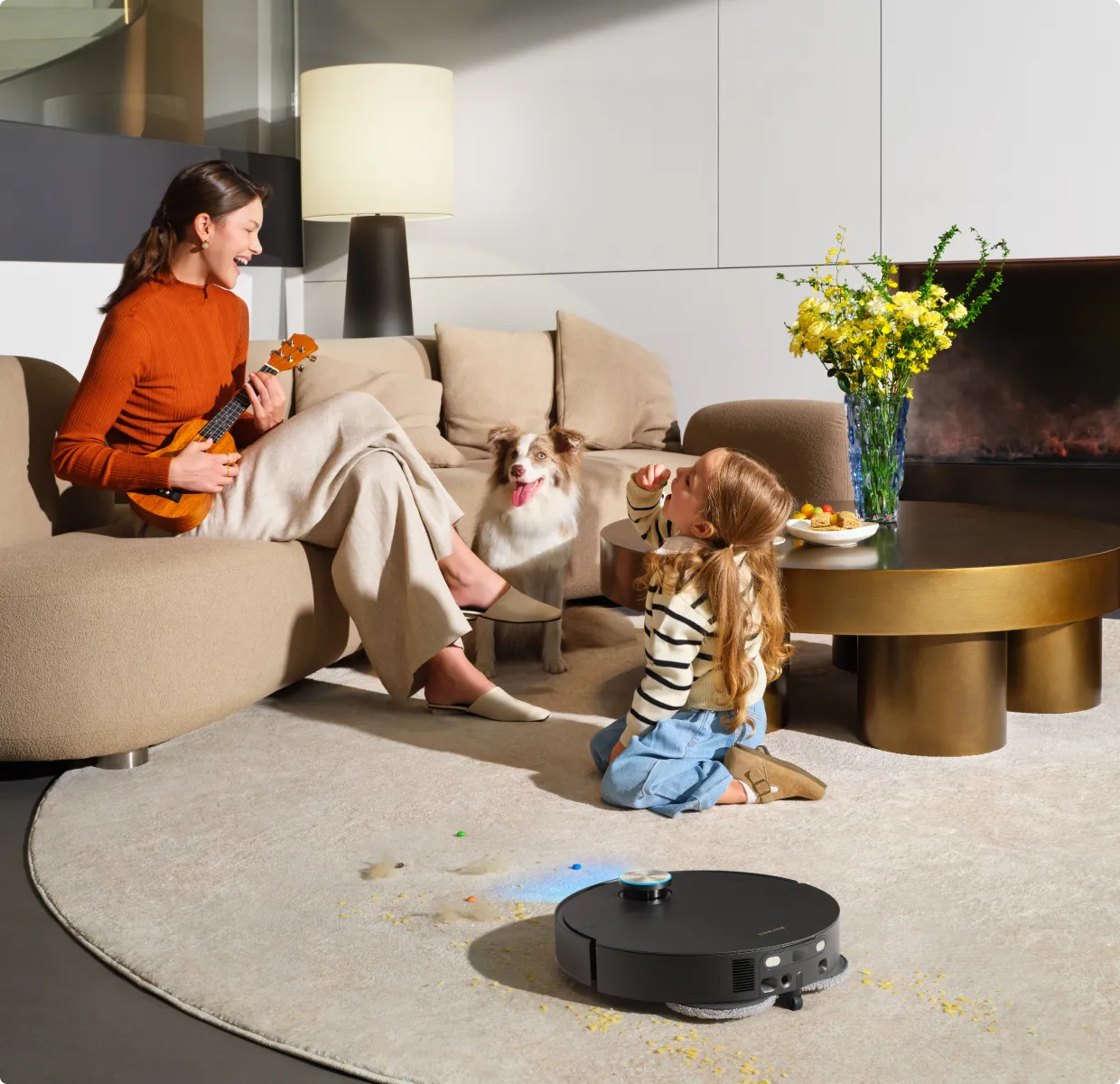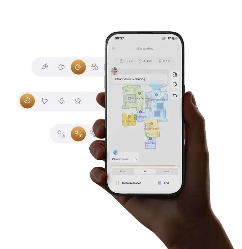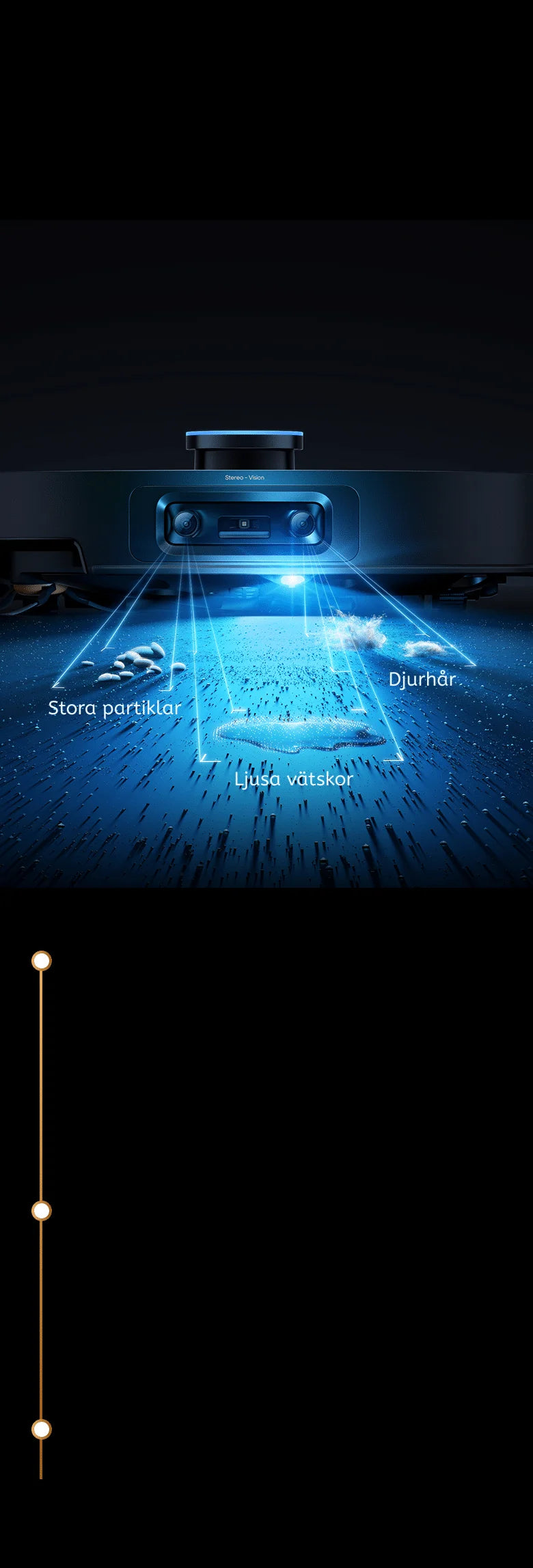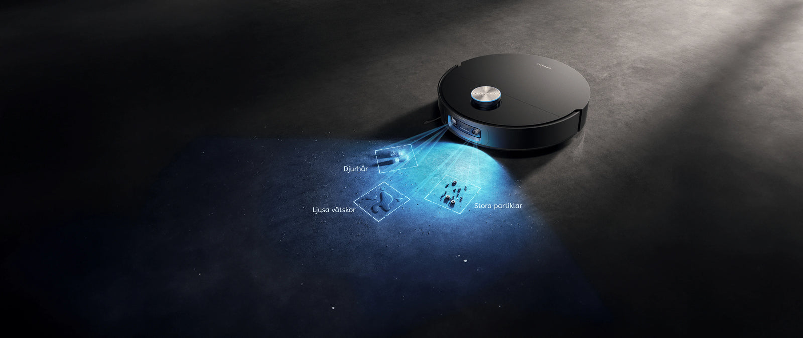 * Vätskeavkänning: Om våta fläckar som t.ex. djururin, läsk och kaffe upptäcks kan du ställa in läget för endast moppning eller undvikande i appen. Den här funktionen är fortfarande i OTA-fasen. Håll utkik efter mer information.