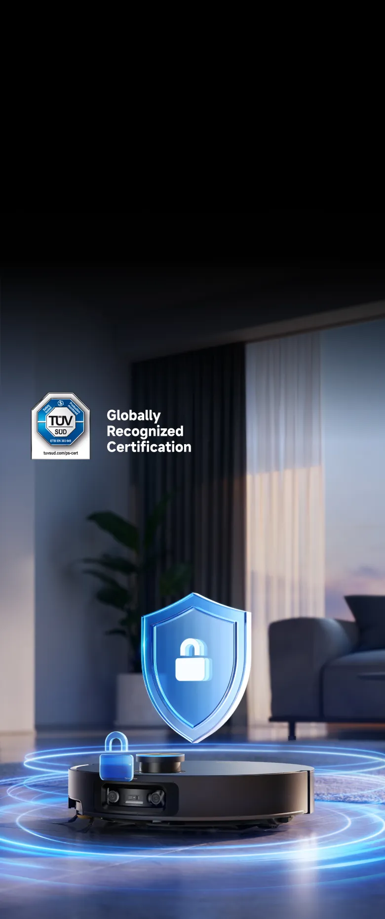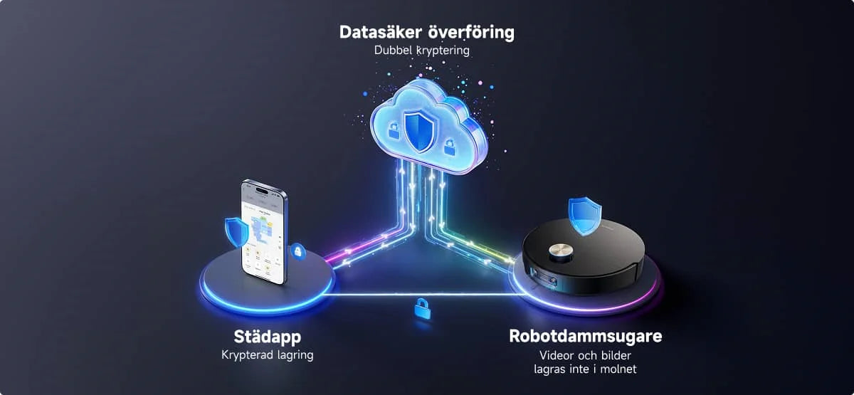 * För att skydda din integritet körs identifieringsalgoritmen enbart på robotdammsugaren, utan att några bilddata lagras i molnet.