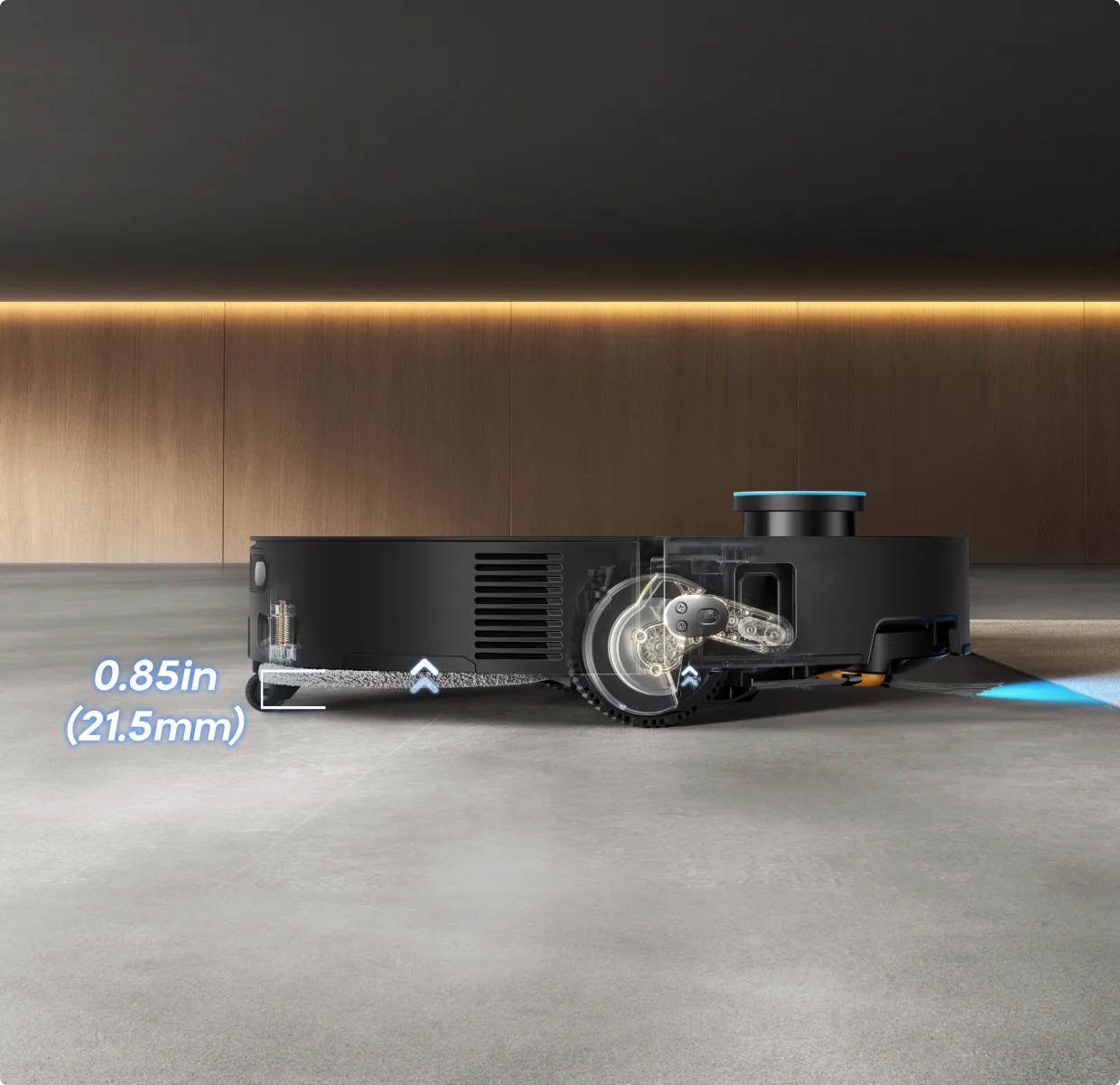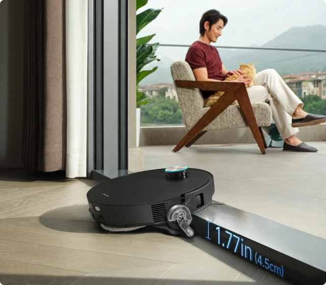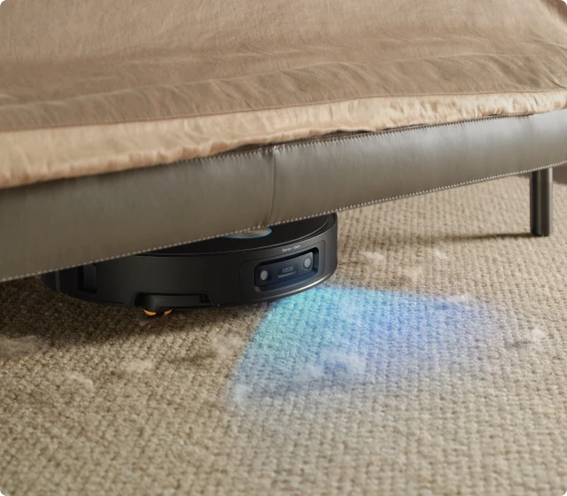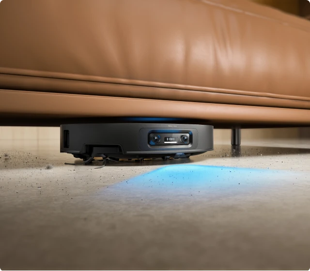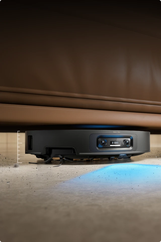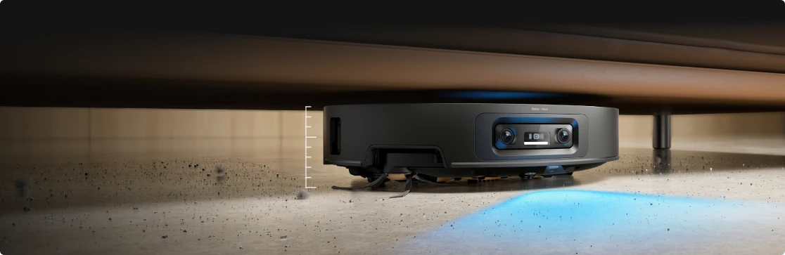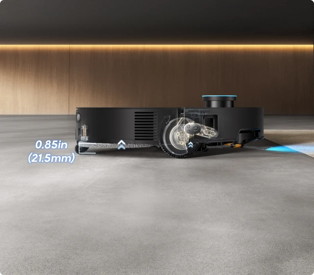 * 7,95 cm: Med ett slimmat hölje på 7,95 cm behöver robotdammsugaren en minsta ingångshöjd på 8,1 cm när VersaLift-navigeringen är aktiverad. Se till att möblernas undersidor är plana och fria från utskjutande delar innan detta läge aktiveras. Baserat på data från våra egna laboratorietester. Faktiska prestanda kan variera.