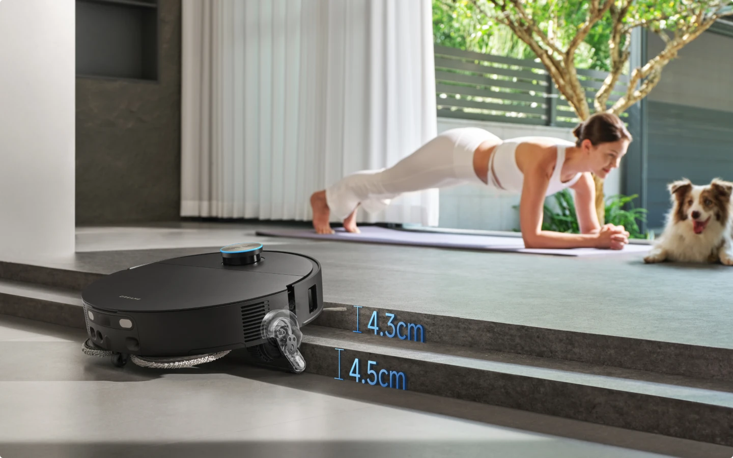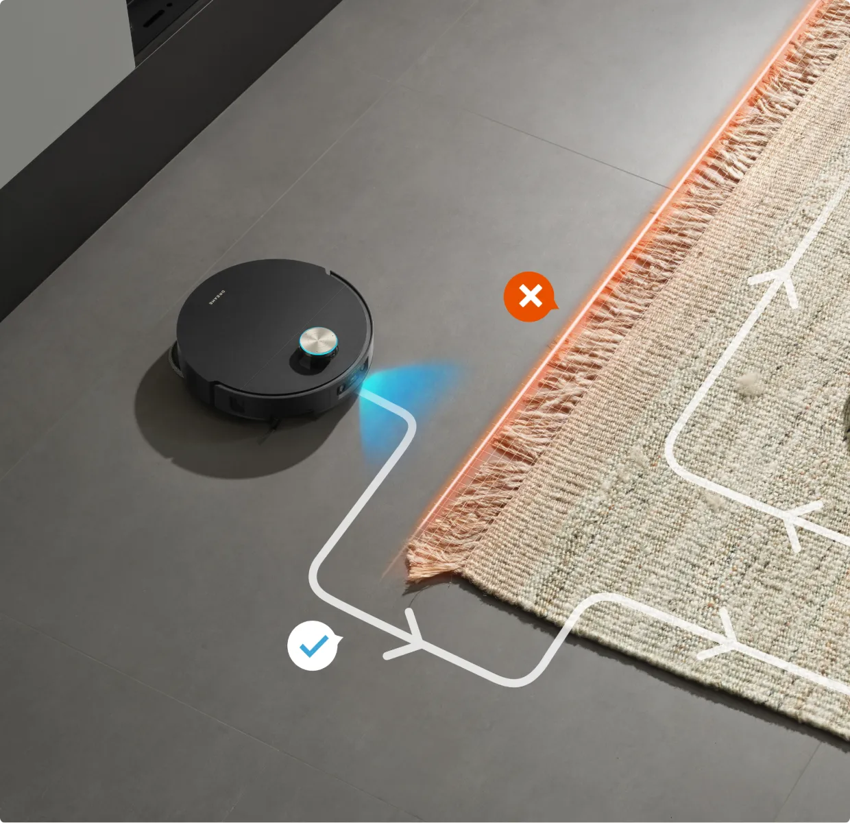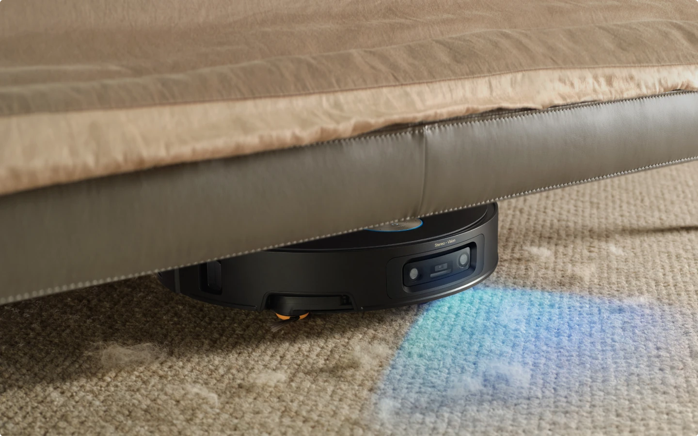 * 7,95 cm: Med ett slimmat hölje på 7,95 cm behöver robotdammsugaren en minsta ingångshöjd på 8,1 cm när VersaLift-navigeringen är aktiverad. Se till att möblernas undersidor är plana och fria från utskjutande delar innan detta läge aktiveras. Baserat på data från våra egna laboratorietester. Faktiska prestanda kan variera.